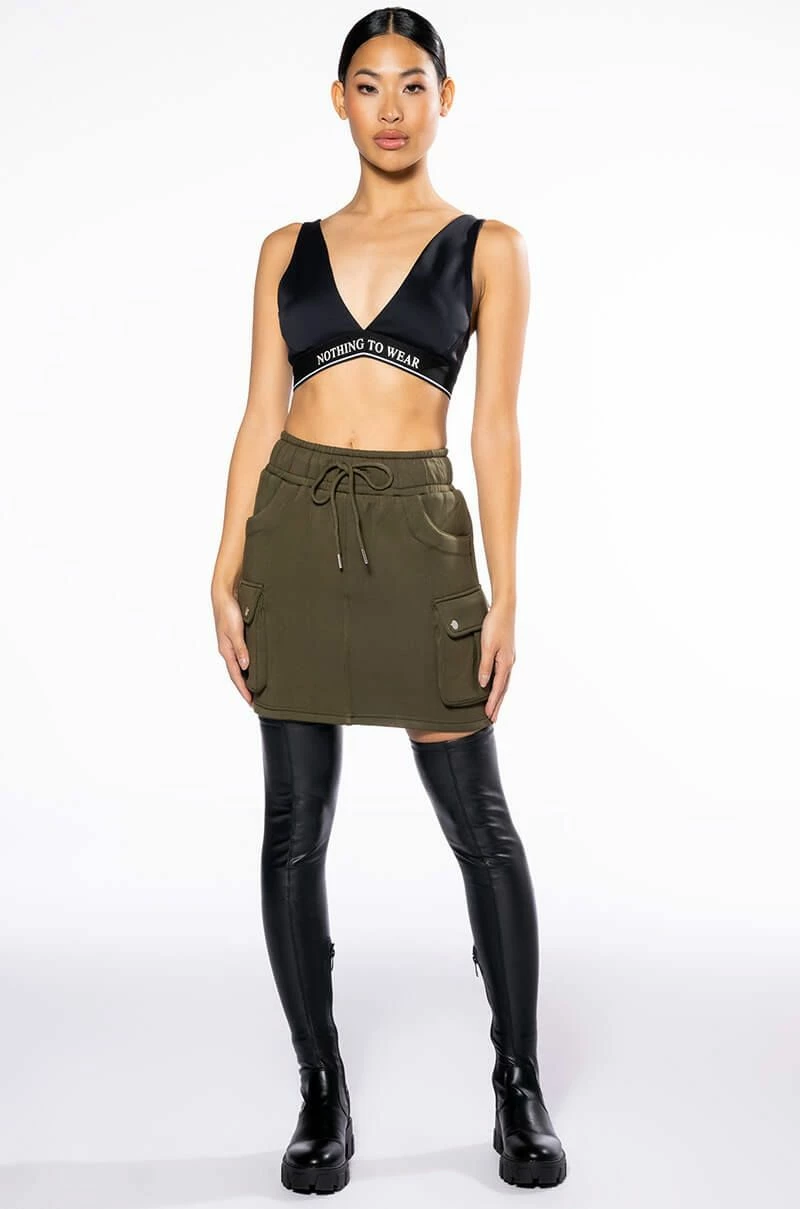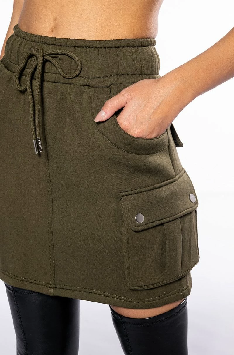 Okay ladies, letβs get in formation with The Akira Label Back To Basics Scuba Cargo Mini Skirt! This skirt is made from a soft scuba fabric and is complete with elastic band and rope-tie waist, two side utility pockets, and a mini length design. It features two faux snap-button pockets at the back and a high rise waist. Pair with your favorite knee high boots to complete the look!