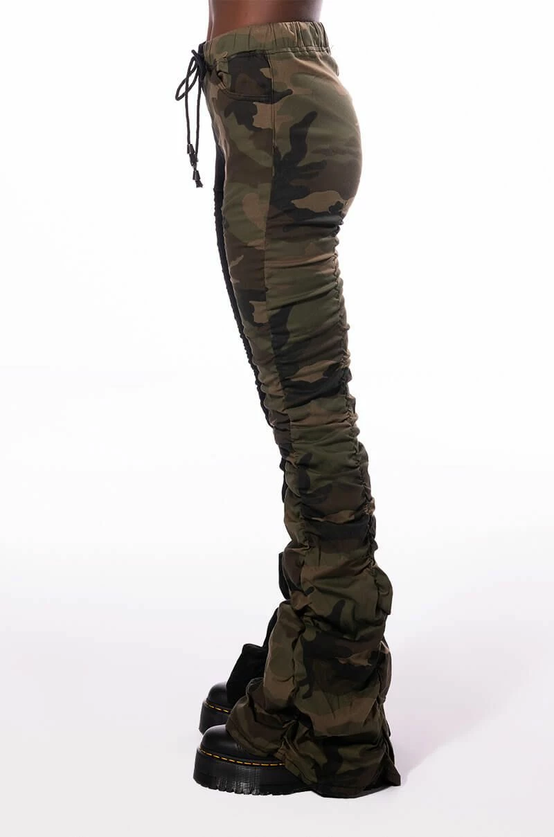 Legs and hips and⦠Serve body ody ody in The Body Is The Best Cinchec Camo Jogger. These stretch cotton jogger pants featuring an elasticated waistband, a drawstring waist tie, on-seam side pockets, and ruched detailing throughout. Complete with wide bell hems, a two-tone colorway, and camo print patterning. Style with ribbed knit tops or a cropped hoodie for a casual chic look.