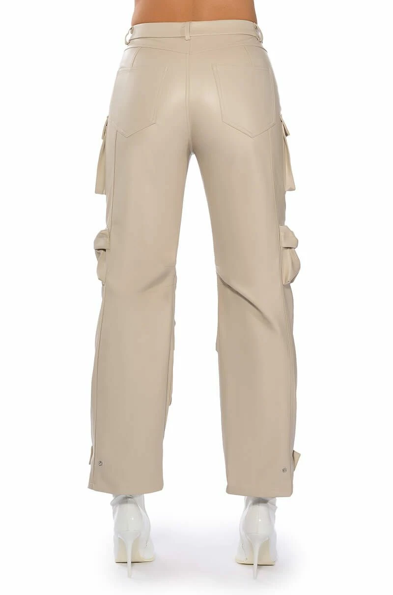 Check in with the girls in The AKIRA Label Bonne Soiree Cargo Faux Leather Pants! These sexy and fresh pants feature a smooth vegan leather fabrication, a high rise silhouette, a classic zip-up button front closure, various side cargo pockets with button fold over flap detailing, flap pockets, and zippered pockets. Complete with a wide leg silhouette, adjustable strap hems, utility seaming, and back pockets. Pair with your fave mesh long sleeved bodysuit and heels for a bonne soirée look!