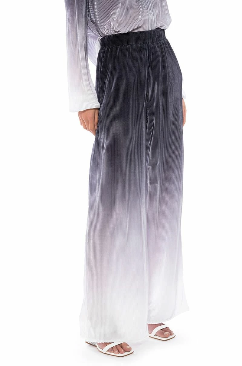 The AKIRA Label Day To Night Pleated Satin Wide Leg Pants In Black White feature a lightweight pleated satin base fabrication, wide pant legs, a high rise elastic waistline, and an ombre design. Complete your look with The AKIRA Label Day To Night Pleated Satin Button Down In Black White for a luxe lounge look.