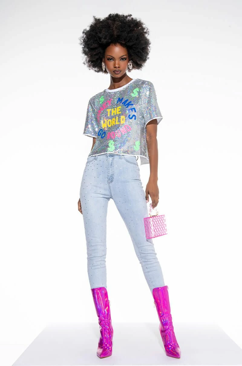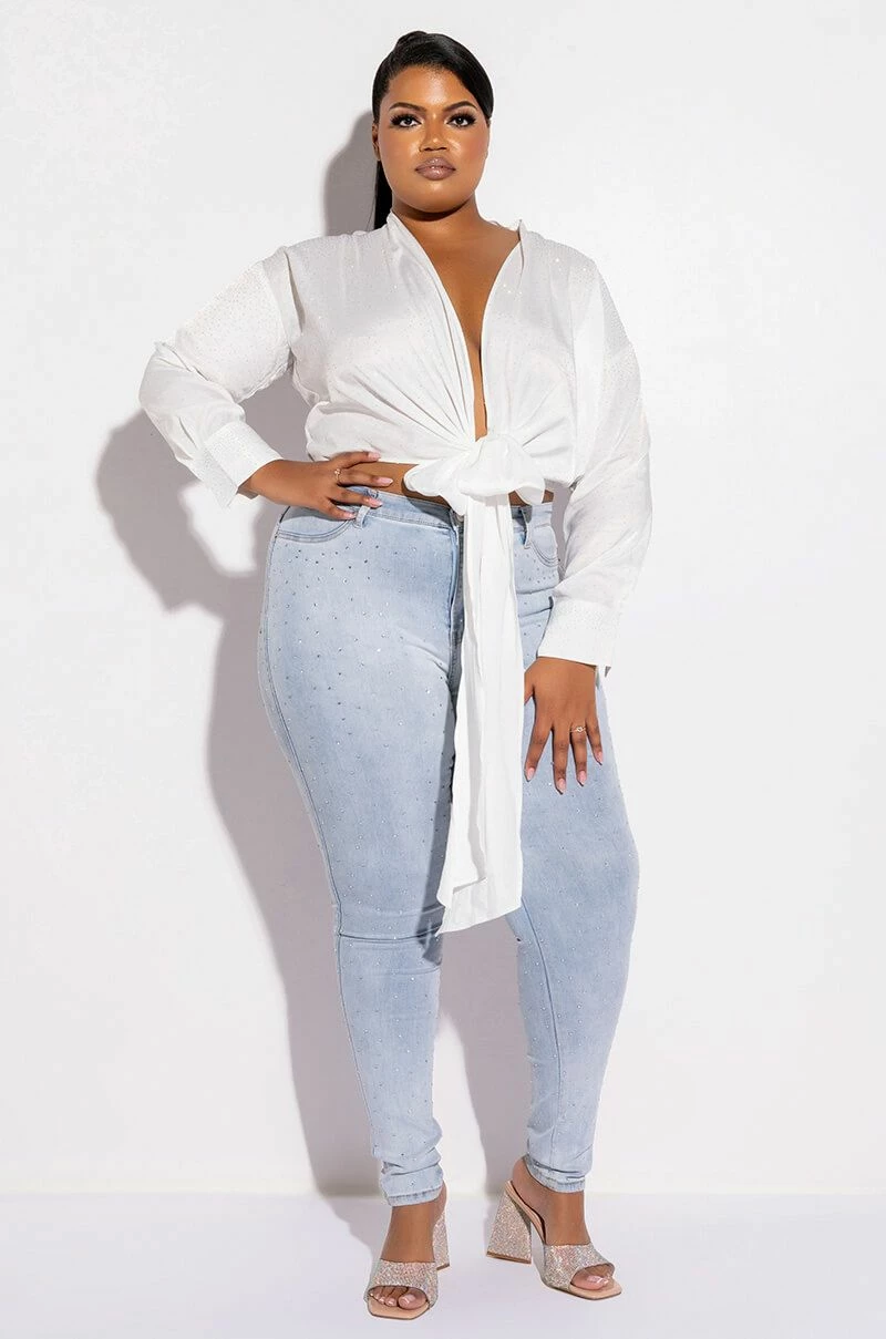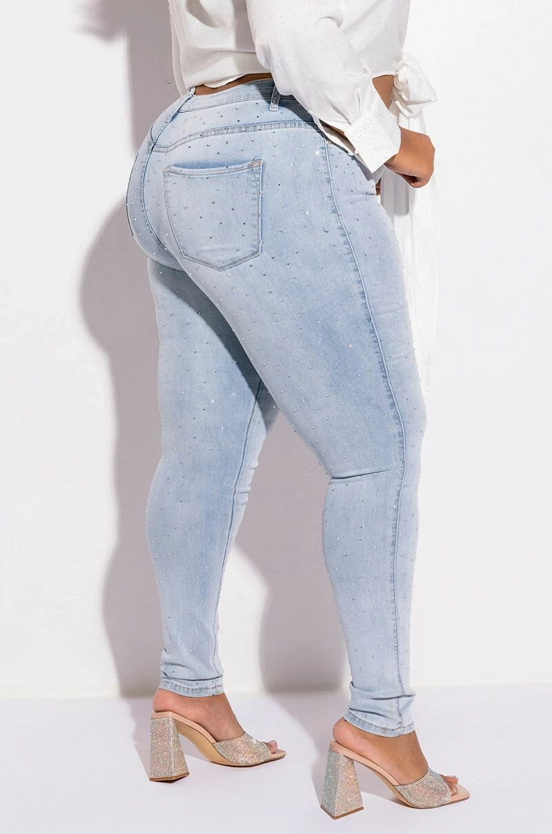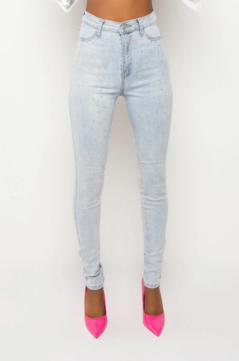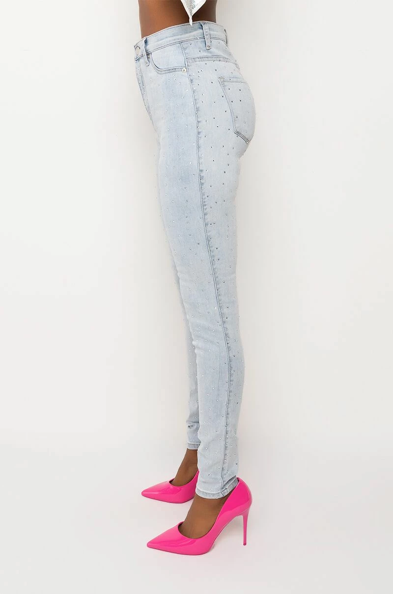 EXTREME STRETCH HIGH WAISTED SKINNY JEANS WITH RHINESTONES