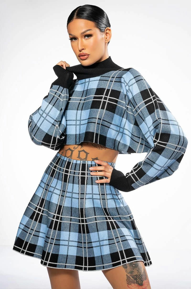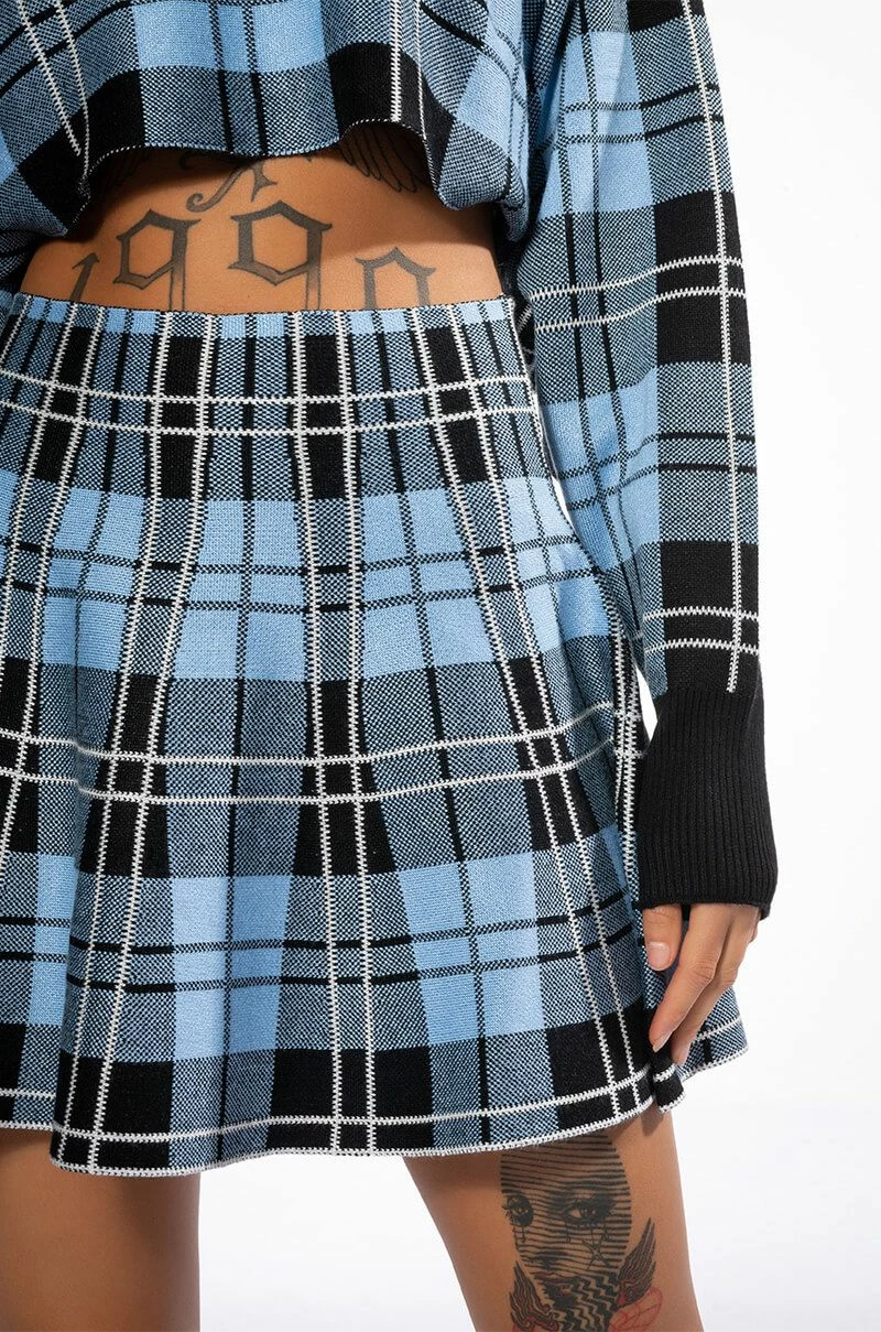 The AKIRA Label Gianna Knit Mini Skirt is a skater skirt complete with a mini hem and soft stretchy fabrication. This piece will look adorable with your seasonal neutrals, but we like it best styled with the matching AKIRA Label Gianna Knit Cropped Zip Up and booties.