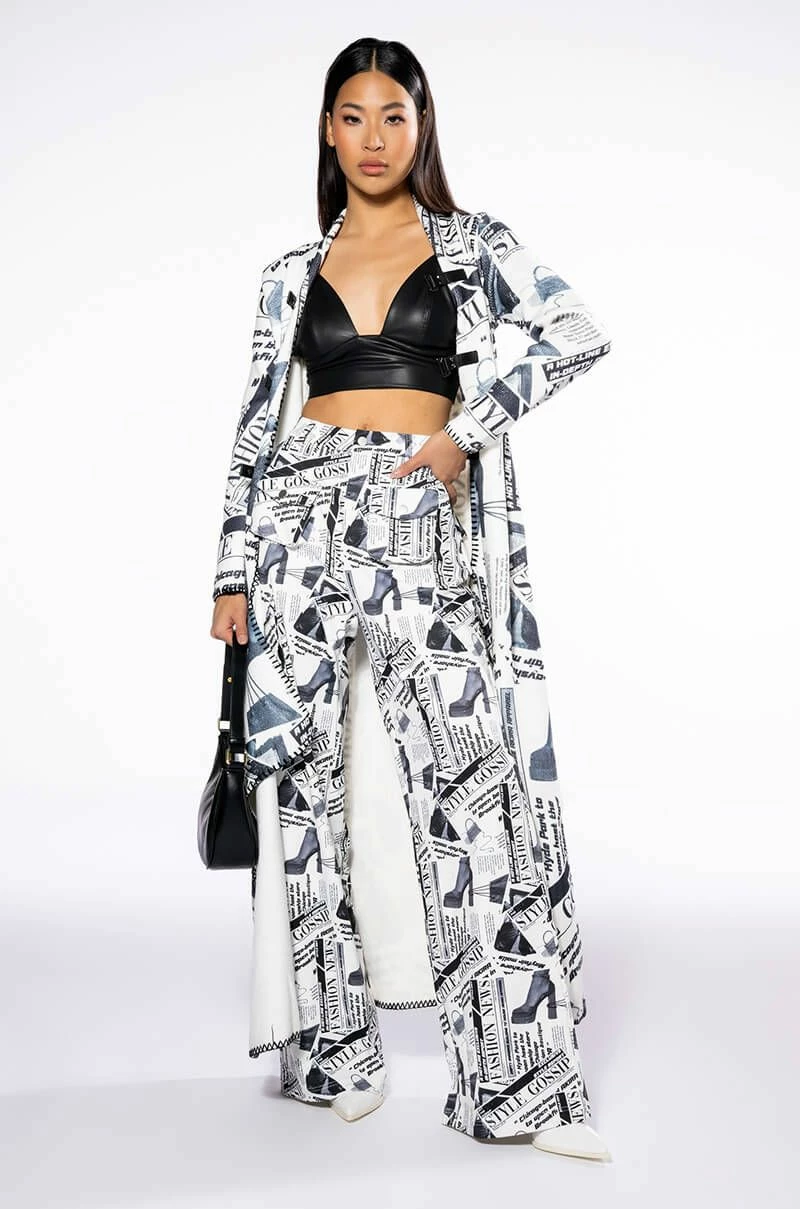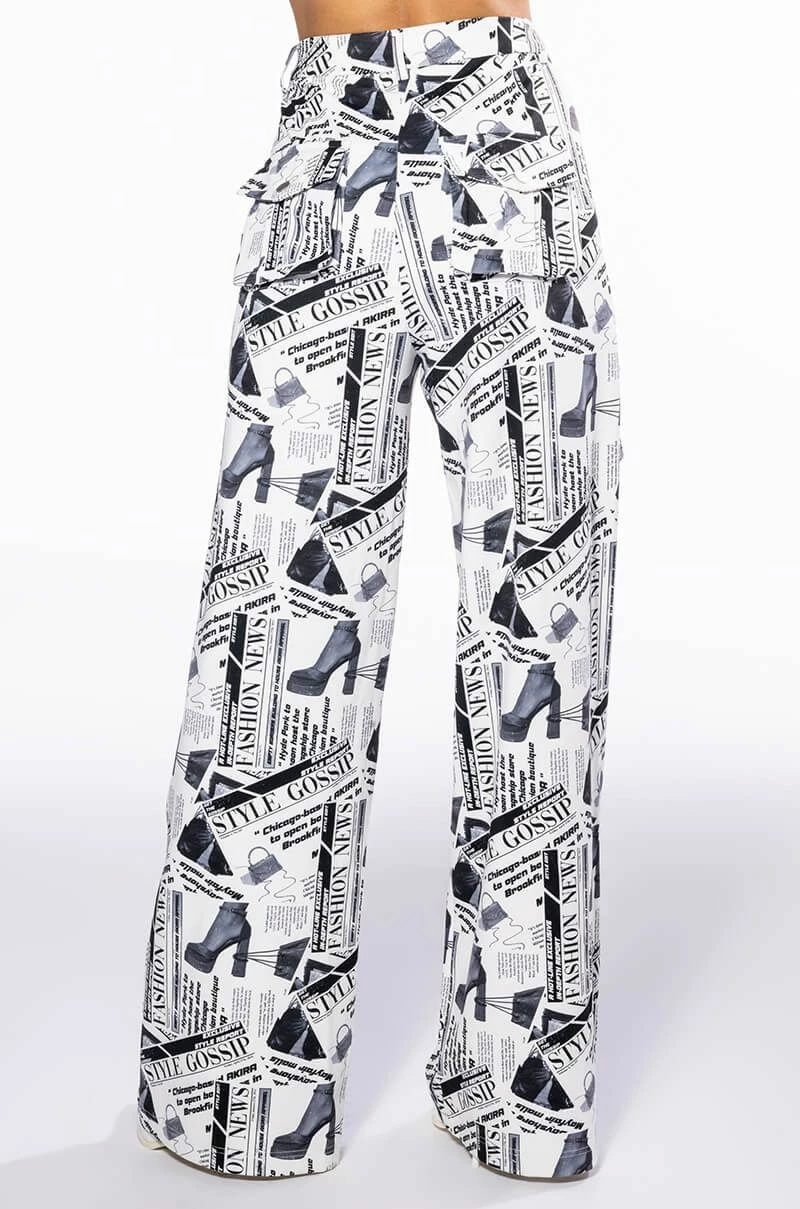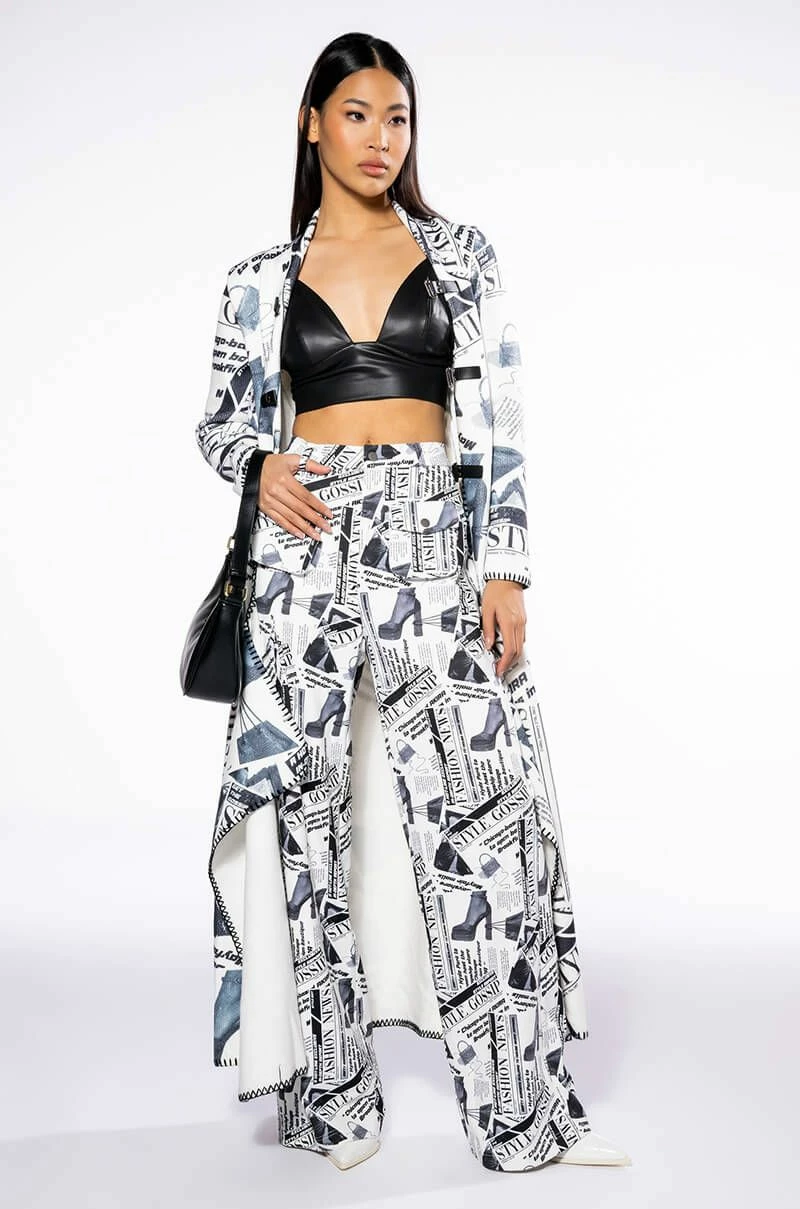 LEGENDARY NEWSPAPER PRINT WIDE LEG TROUSER