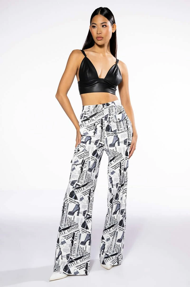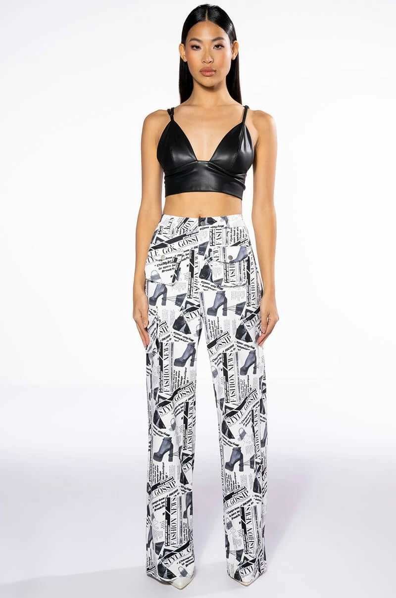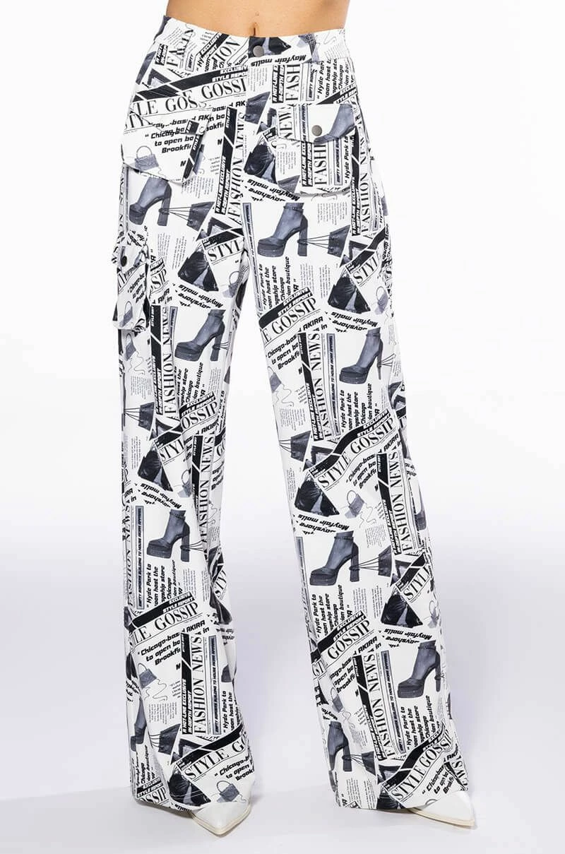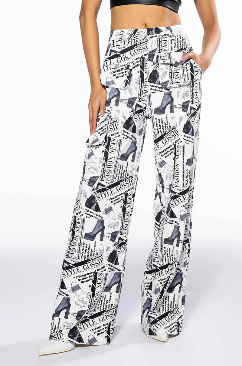 LEGENDARY NEWSPAPER PRINT WIDE LEG TROUSER