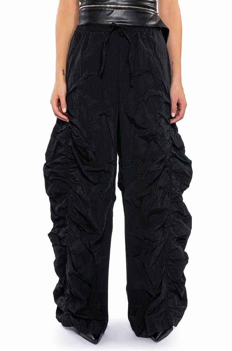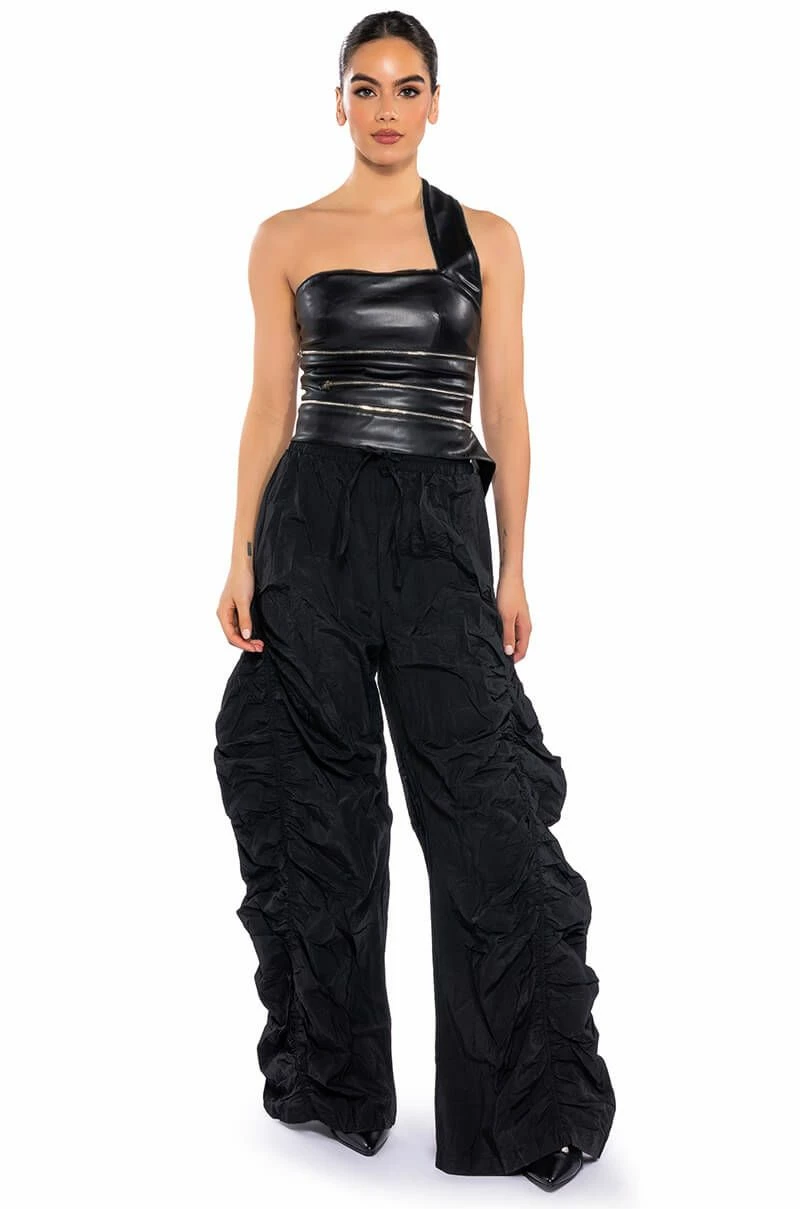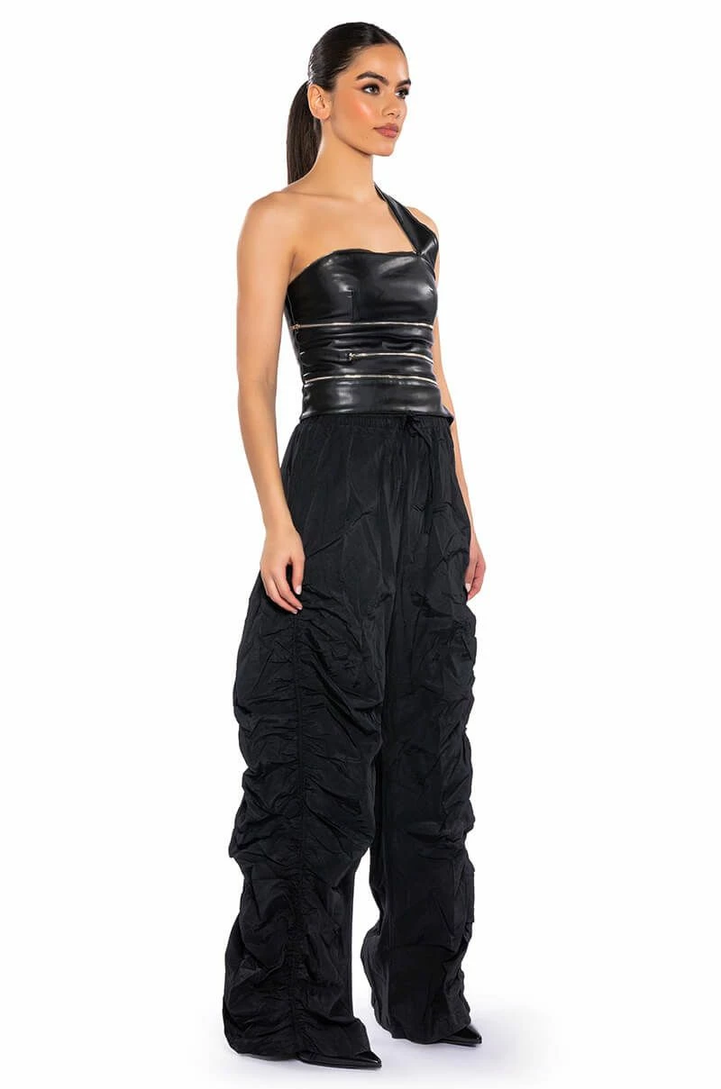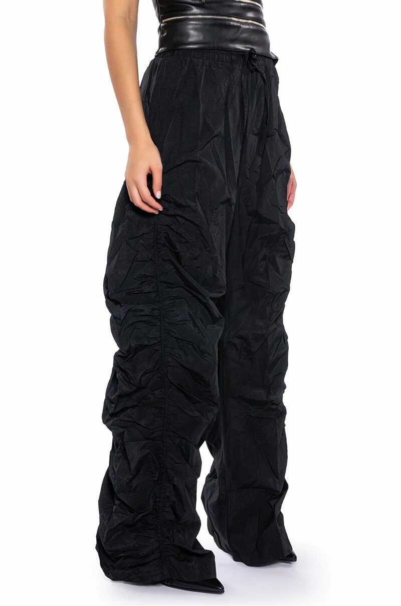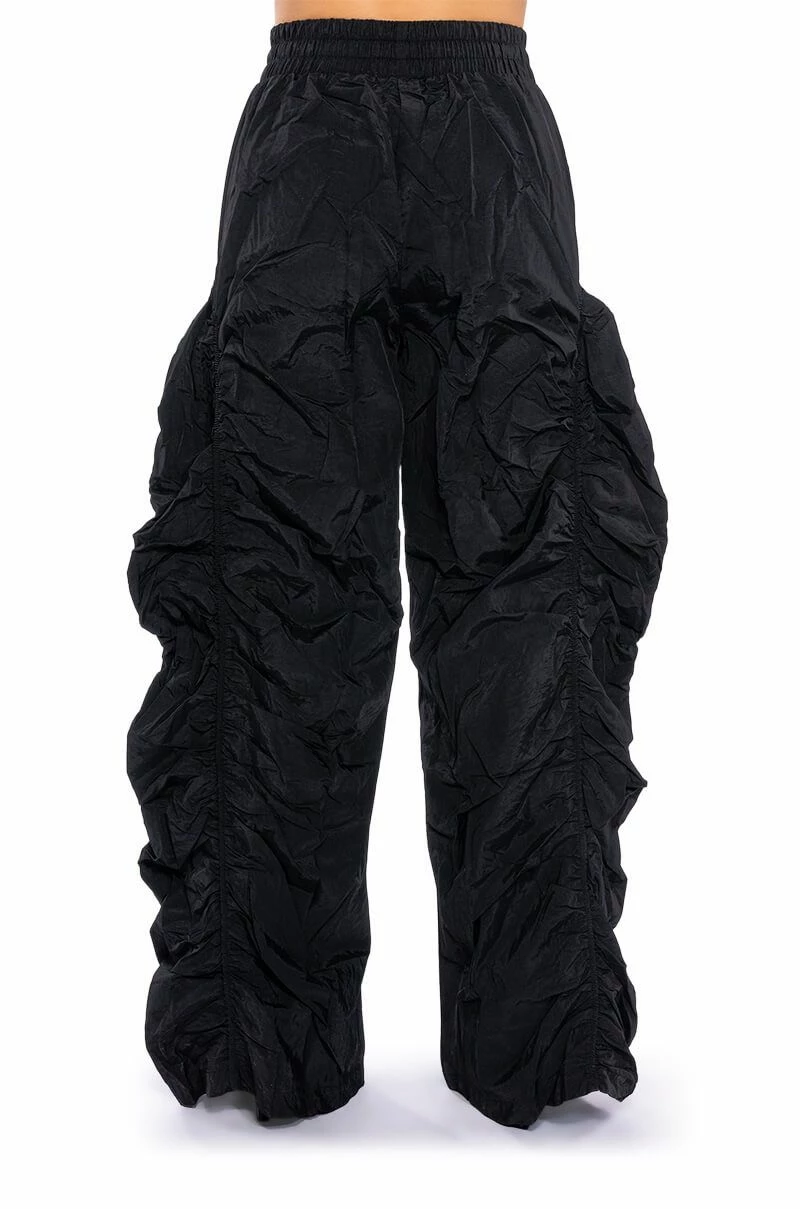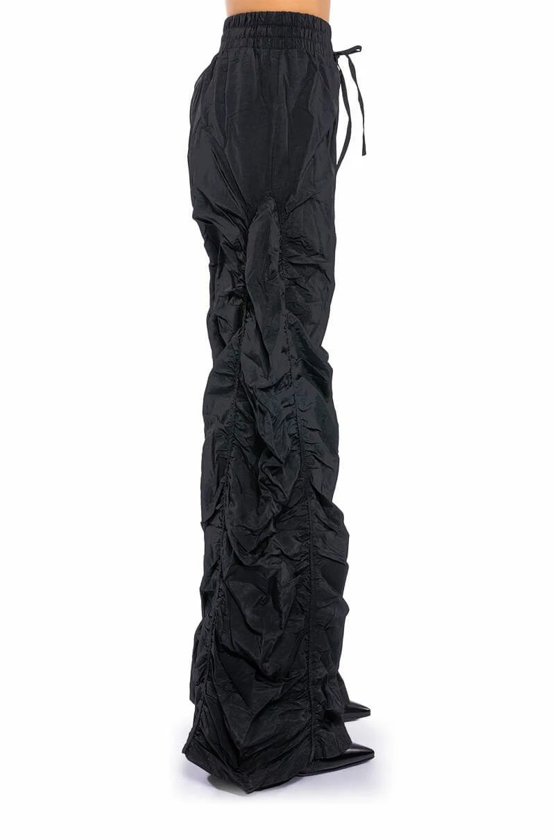 The AKIRA Label Lotti Ruched Jogger is made from a lightweight, cotton blend base fabrication. It features a wide, shirred elastic drawstring waistband, a wide leg silhouette, and ruched detail along the sides. Complete with a slip-on fit. Style with a baby tee and slides or a mesh bodysuit and pumps – the styling possibilities are endless!