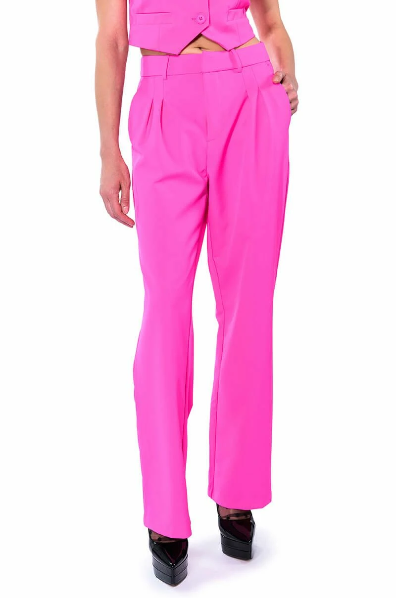 The AKIRA Label Making The Cut Logan Trouser is made with a sleek, lightweight base material and features a high-rise waist, a zip-up to hook-and-eye front closure, slant side pockets, and form-flattering princess seaming. These pants are complete with a smooth inner lining, working belt loops, and a straight leg silhouette! Pair with the coordinating AKIRA Label Making The Cut Cropped Vest and pumps for a sexy, boss babe look.