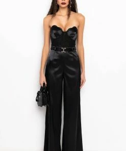 THE ONE AND ONLY WIDE LEG STRAPLESS JUMPSUIT WITH ATTACHED BELT
