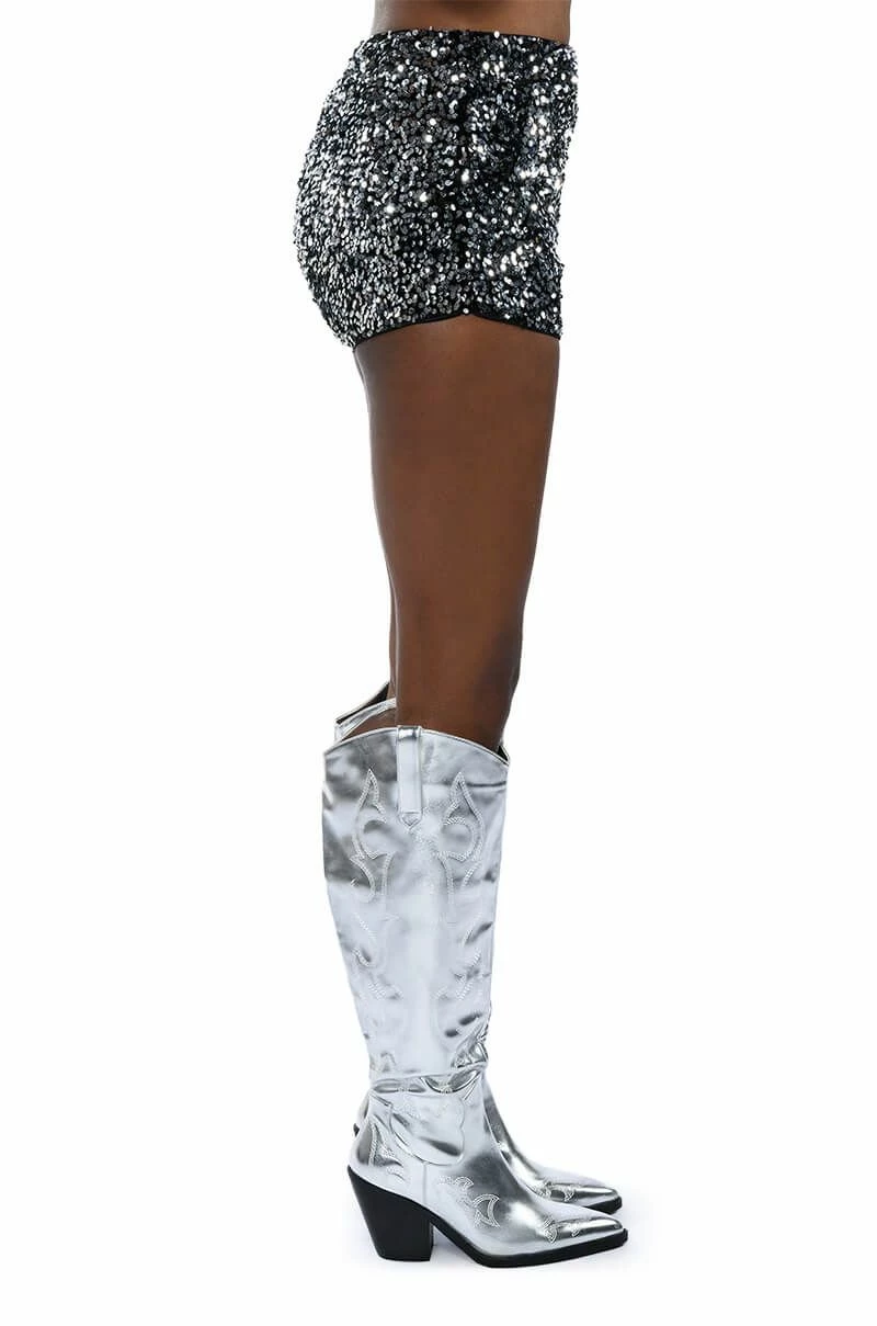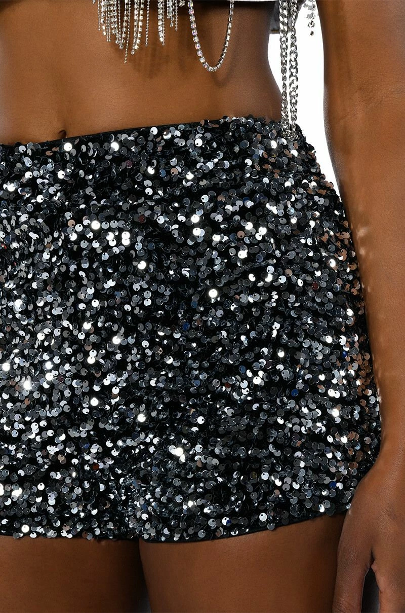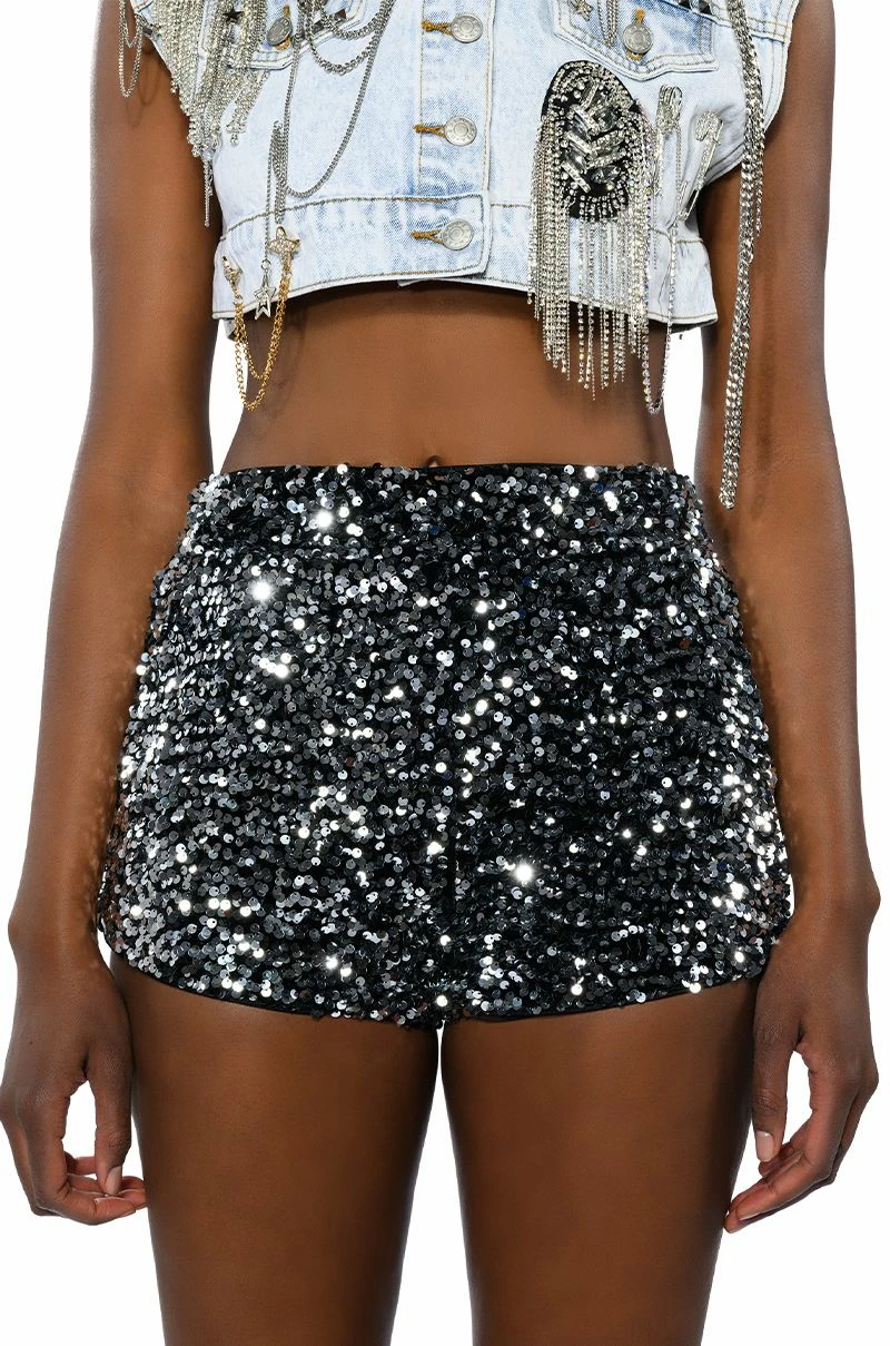 The AKIRA Label The Best Me Sequin Shorts are made from a luxe, velvet base fabrication and feature a glimmering mirrored sequin design throughout. Complete with a mid-rise waisted silhouette, a mini length, smooth inner lining, and an exposed back zipper closure. Style with a mesh bodysuit and thigh high boots for a picture perfect look.