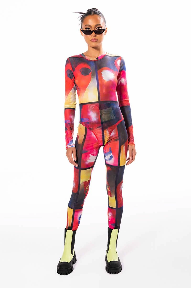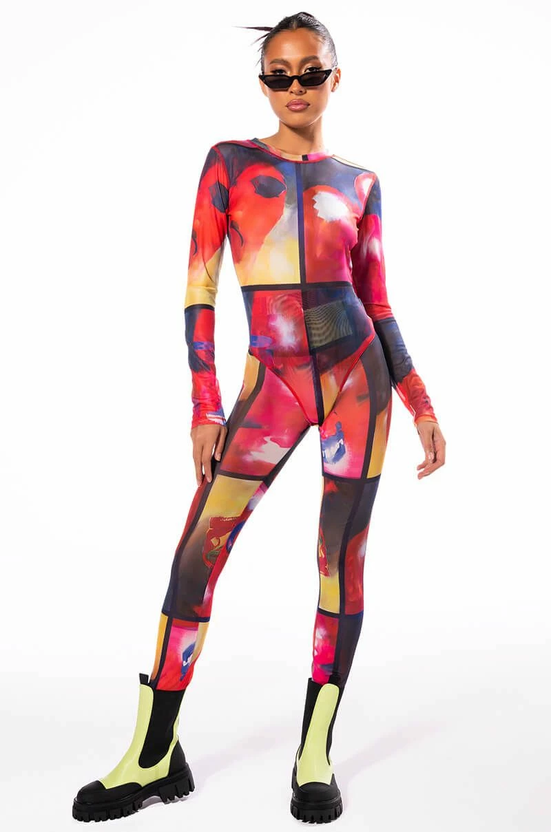 Somewhere on our mind. The AKIRA Label Thinking Of A Place Mesh Legging features a sheer mesh fabrication, a multicolor abstract print pattern, an elastic waistband, an ankle-length silhouette, and a pull-on fit. Pair this piece with the matching AKIRA Label Thinking Of A Place Long Sleeve Mesh Bodysuit to finish off your graphic look!