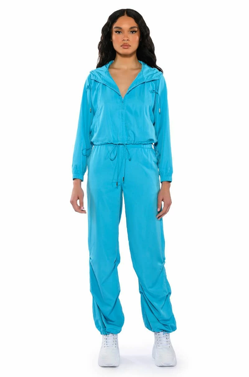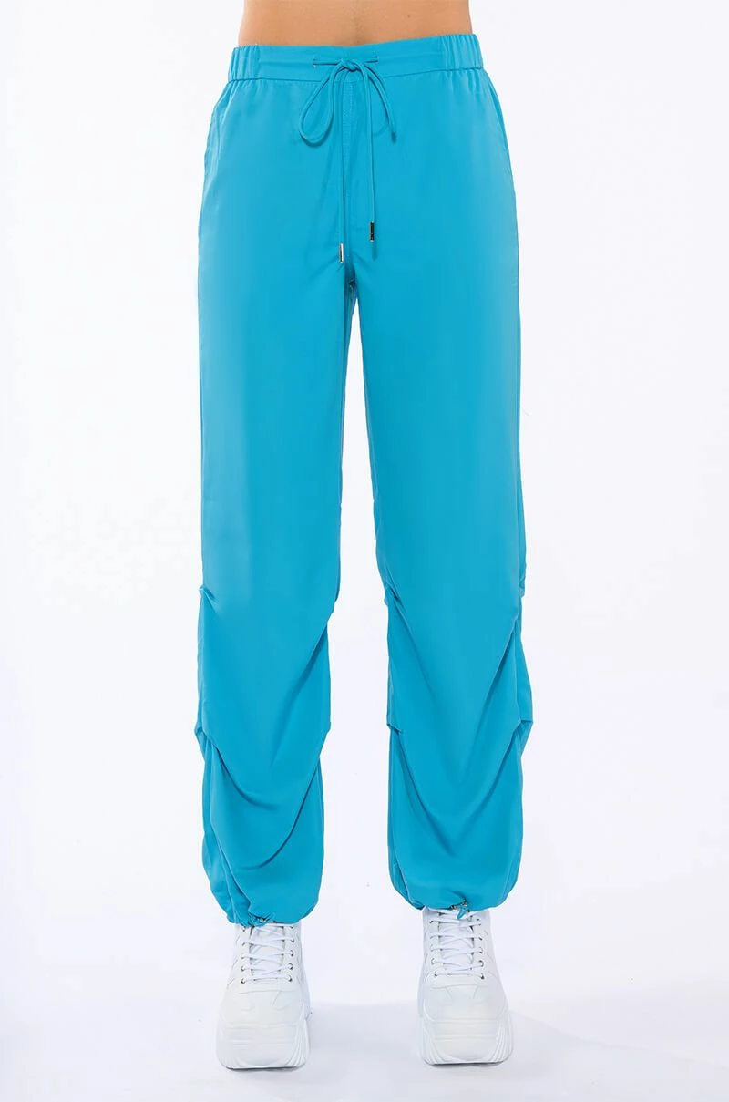 Turn on airplane mode with The AKIRA Label Vacay Mode Drawstring Jogger! This quintessential athleisure piece is made from a sleek, lightweight fabrication and features an elastic drawstring waistband, slant side pockets, working velcro back pockets, and a parachute pant silhouette. Complete with a high waist and adjustable drawstring bottom hems. Pair this piece with the matching AKIRA Label Vacay Mode Zip Up Sweatshirt and chunky sneakers to complete your look.